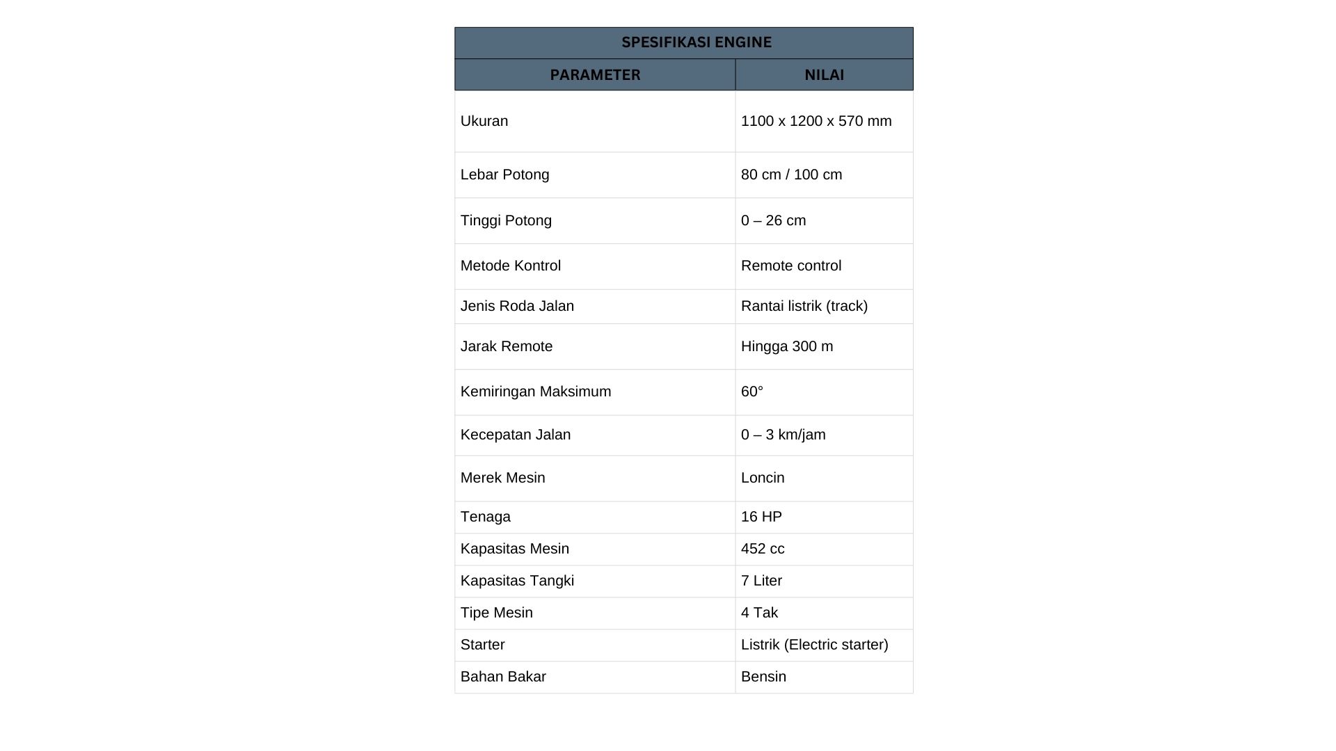 H800L hadir sebagai inovasi pemotong rumput generasi baru yang praktis, kuat, dan cerdas. Dibekali mesin Loncin 16 HP (452 cc) dengan sistem starter listrik, alat ini mampu bekerja terus-menerus dengan efisiensi tinggi. Tangki bensin berkapasitas 7 liter memastikan daya tahan kerja lebih lama tanpa sering mengisi ulang.